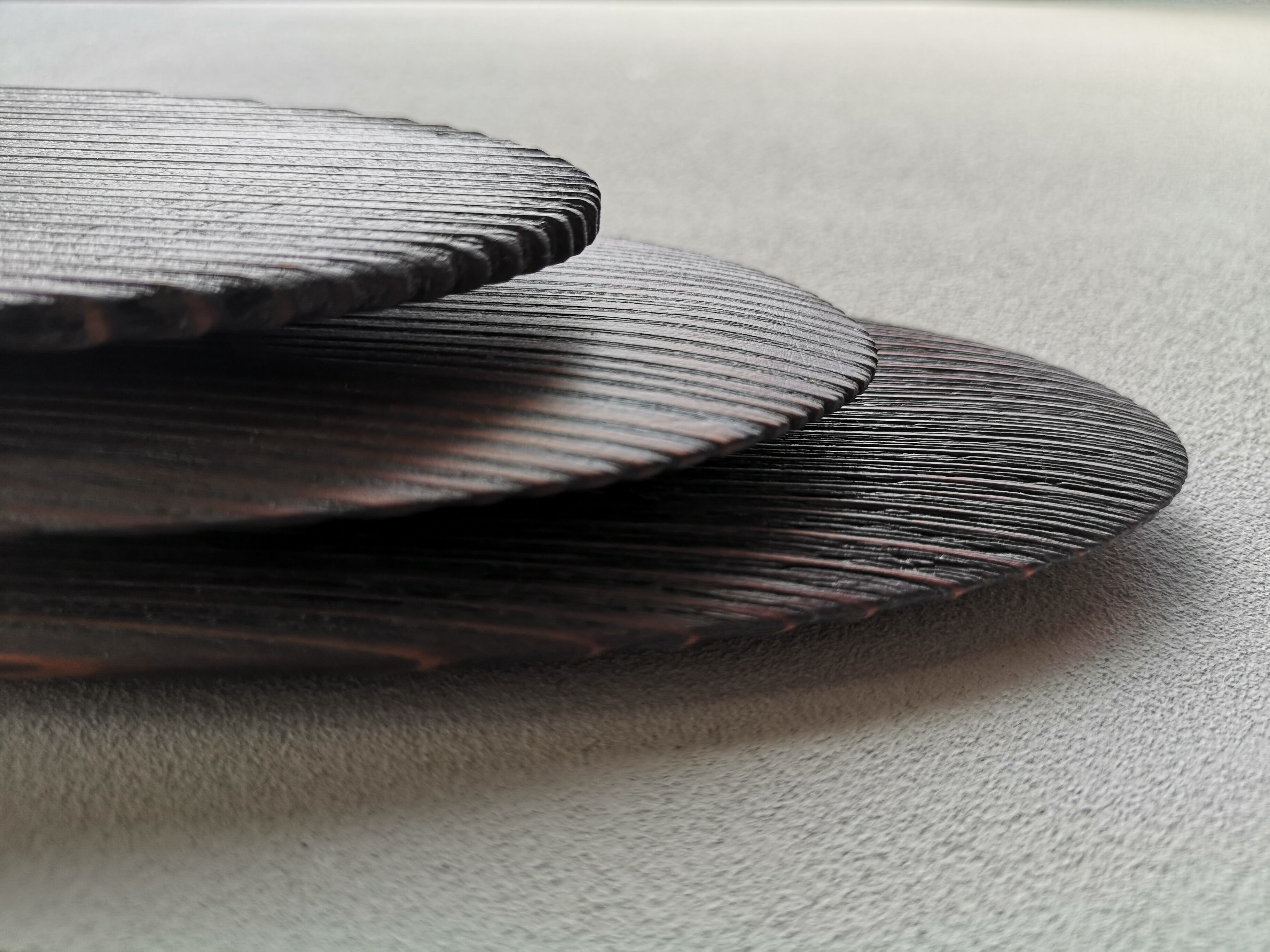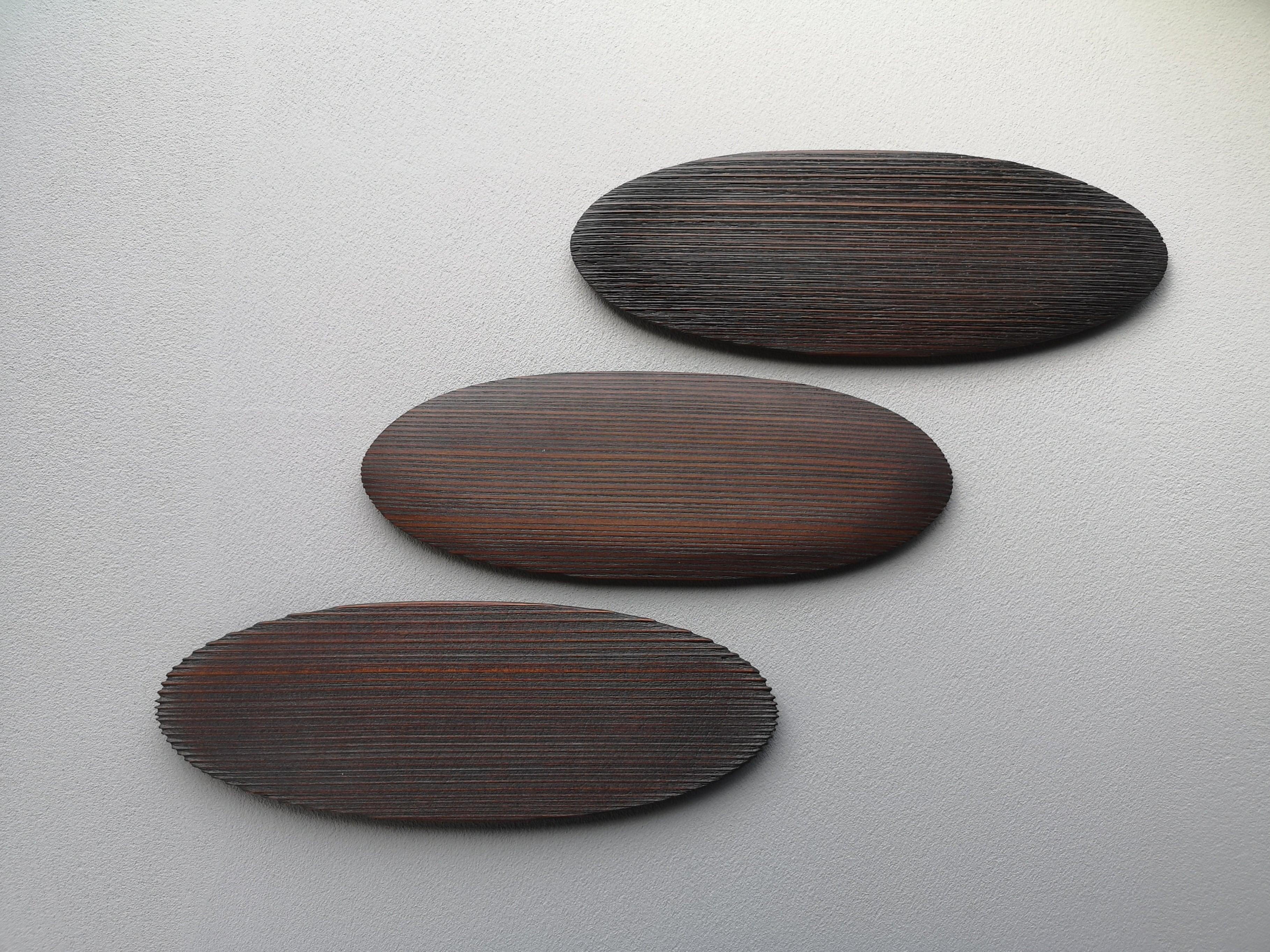 「千(セン)」Aは、目の詰んだ柾目の杉材を削り出し、拭き漆を施して仕上げたプレートです。